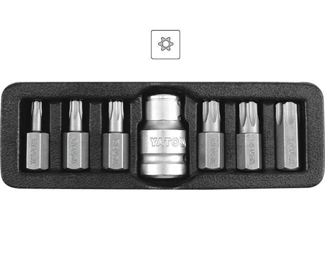 Bity Torx (vrtané), sada 7 dílů, pro ráčnu 1/2″, Yato