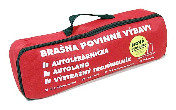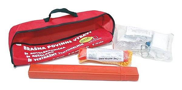 Autolékárnička podle vyhlášky č. 341/2002 Sb., ve znění vyhlášky č. 216/2010 Sb. a vyhlášky 182/2011 Sb. Ministerstva dopravy. Expirace autolékárničky: 4 roky.