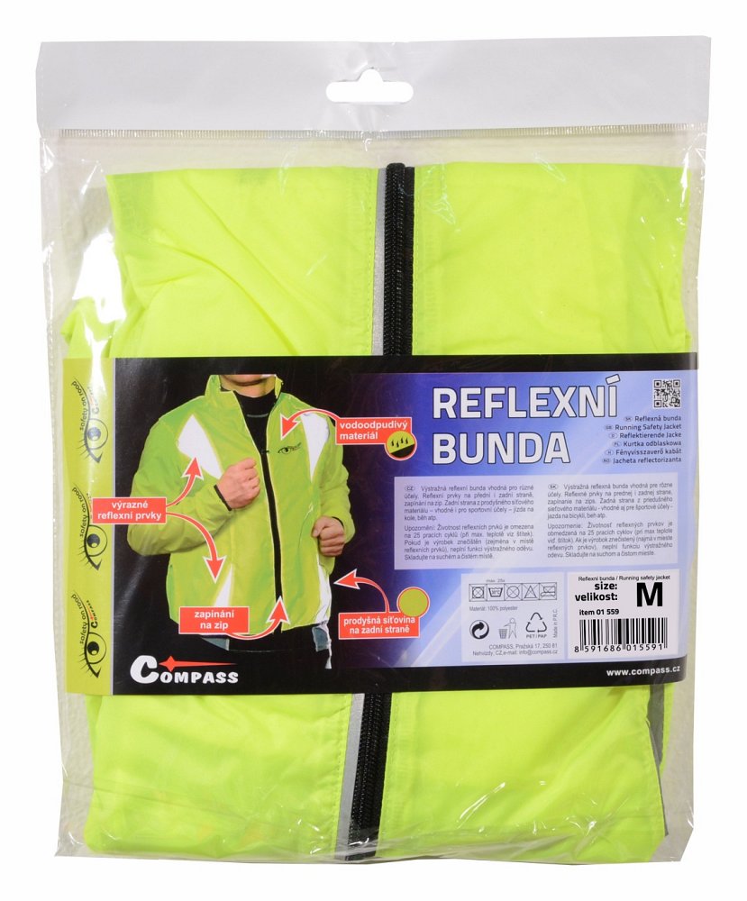 Výstražná reflexní bunda vhodná pro různé účely. Reflexní prvky na přední i zadní straně. Zapínání na zip, zadní strana bundy z prodyšného síťového materiálu.