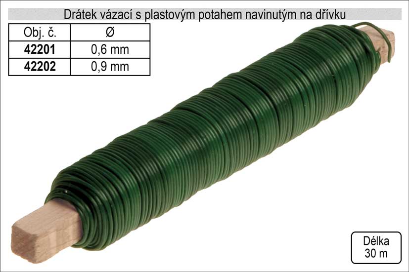 Drátek vázací s PVC potahem 0,9mm délka 30m na dřívku