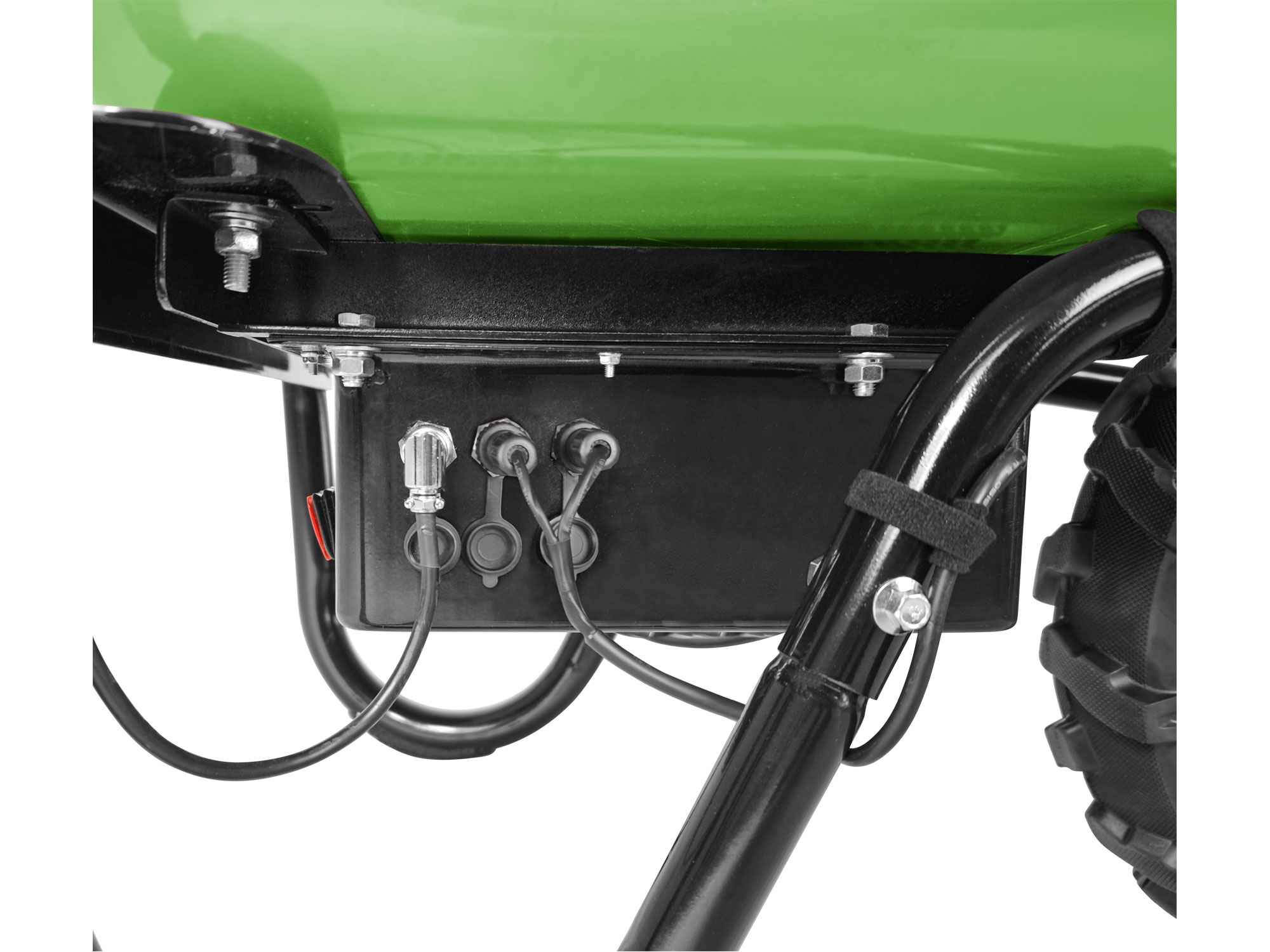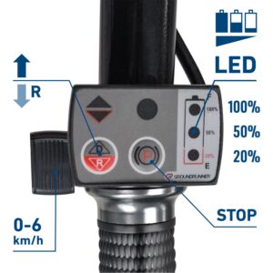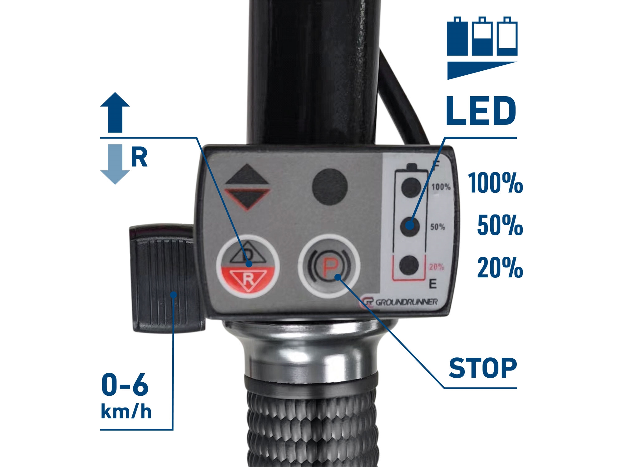Přepravní aku kolečko s pomocným elektrickým pohonem je určeno pro přepravu tuhých, sypkých nebo hustých materiálů. Díky elektrickému pohonu se výrazně urychlí přeprava materiálu a zároveň sníží únava obsluhy, což významně zvýší produktivitu práce. Kolečko má na pravé rukojeti ovládací panel a pomocí palce si může nastavit okamžitou rychlost jak do předu, tak dozadu. Na ovládacím panelu lze nastavit jízdu dopředu nebo dozadu, brzdu a je tam ukazatel nabití baterie. Kolečka jsou poháněná nejmodernějším „brushless“ motorem. Tento nový typ motoru má vyšší životnost, je výkonnější a má menší spotřebu el. energie než klasické motory s uhlíkovými kartáči. Pokud je to nutné, lze motor kompletně vypnout a používat kolečko jen na ruční pohon. Elektrická brzda se používá pokud potřebujete zamezit pohybu kolečka na místě. Pneumatika má hluboký vzorek do terénu. Kolečko je dodáváno s kovovou korbou o objemu 80l, bezešvě lisovanou z jednoho kusu plechu. Pro přepravu lehčího a objemného nákladu lze dokoupit samostatně prodávanou plastovou korbu o objemu 100l. Všechny náhradní korby mají předvrtané díry pro snadnou montáž. Kolečko má krytí IP64, což mu umožňuje dočasnou práci ve vlhkém prostředí, případně umývání vapkou, ale není určeno k trvalému provozu nebo skladování ve vlhkém prostředí. Zdrojem elektrické energie jsou dvě olověné 12V/12Ah baterie. Baterie má ochranu proti vybití pod minimální úroveň, před přetížením při nadměrném odběru proudu, přebitím, zkratem a náhlému zvýšení teploty při práci.