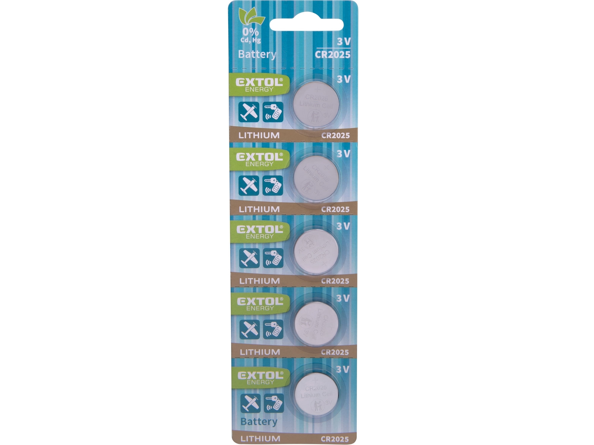 EXTOL ENERGY Knoflíkové baterie 3V (CR2025) lithiové, balení 5ks