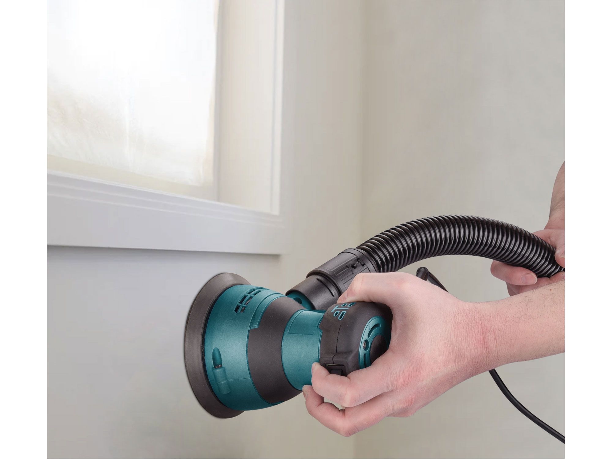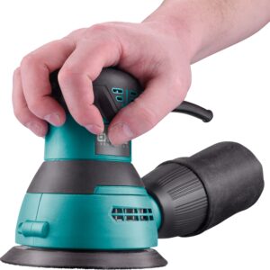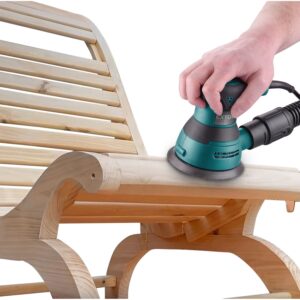 Menší excentrická bruska pro práci jednou rukou je vhodná k suchému broušení dřeva (např. obložení, nábytku, dveří, oken), kovu, umělé hmoty, tmelu, dále k obrušování nátěrů, koroze atd. a k leštění zasucha. Díky malým rozměrům se používá také pro práci v obtížněji přístupných místech. Při práci jednou rukou máte větší cit v ruce a můžete jemněji manipulovat strojem na povrchu materiálu. Orbitální (excentrické) pohyby kotouče zvyšují efektivitu broušení a snižují mechanické stopy na materiálu, které mohou vznikat při broušení ve vysokých rychlostech. Regulace otáček stroje je vhodná při opracovávání různých typů materiálů. Bruska má zabudované odsávání jemného prachu vznikajícího při broušení a ukládá ho do sběrné nádoby, čím výrazně zmenšuje znečištění pracovní plochy a vzduchu při práci. Pokud máte k dispozici průmyslový vysavač, můžete ho také připojit na brusku a tím zvýšit kvalitu odsávání jemného prachu. Brusné papíry jsou upevněny pomocí suchého zipu. Bruska není vhodná pro broušení sádrokartonu.