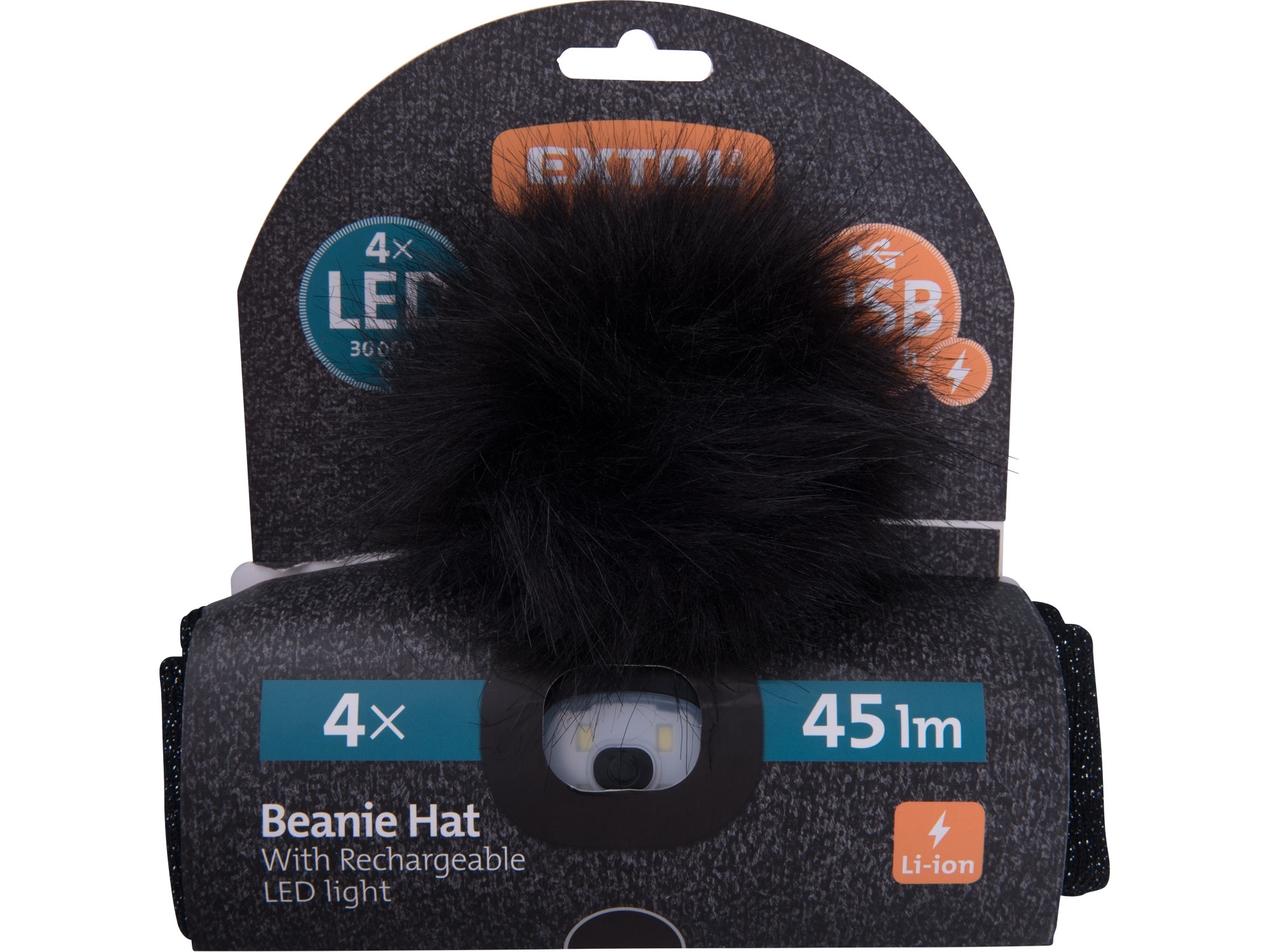 doplňující parametr: 4x45lm LED, Li-ion 300mAh, 3 módy světla: 100%-75%-50%, čas svícení: 100min-150min-4h, USB nabíjení: 2,5h, hmotnost s baterií 88g