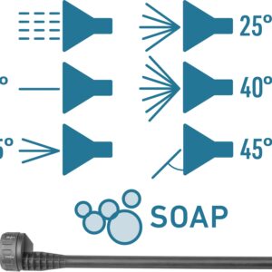 trysky: paprsek 0°, 15°, 25°, 40°, boční, sprcha