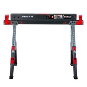 FESTA 23657 koza stavební skládací 1kus, nosnost 590kg, výška 61,5-82cm Nastavitelná stavební koza FESTA je vhodná všude tam, kde potřebujete vytvořit výškově nastavitelnou pracovní plochu nebo stůl. V páru dvě kozy disponují více než dostatečnou nosností až 1180kg (590k…
