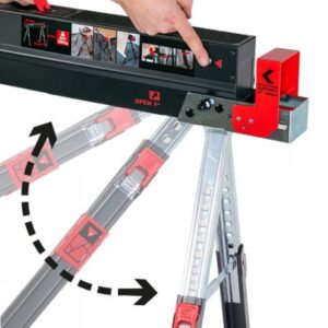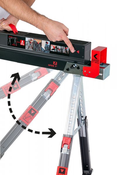 • nosná plocha s protikluznou vrstvou, na jedné straně noh výklopné opěrky pro OSB desky, lamino, apod. s nosností 30 kg na jednu opěrku