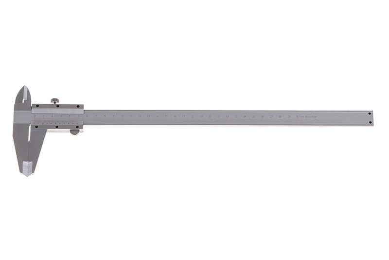 Posuvné měřidlo 0 – 300 mm s přesností 0,02mm, metrická stupnice v mm, hloubkoměr, kvalitní nerezová ocel, přesné zpracování, plynulý posuv, šroubková aretace – vhodné pro sabilnější přenos rozměrů, tabulka převodů jednotek, plastové pouzdro.