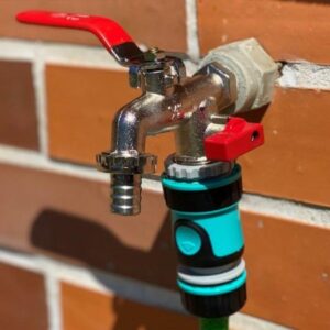 připojení 1/2″, dvojité vyústění 3/4″ se samostatnými pákovými uzávěry – umožňuje napojit hadici a zároveň mít kdykoliv jednoduchý přístup k vodě pro další použití – napouštění vody, nebo připojení další hadice