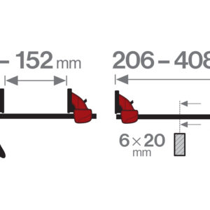 • doplňující parametr: pracovní rozsahy: sevření 0-152mm, rozepření 206-408mm