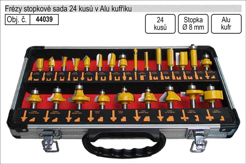 Frézy stopkové sada 24 kusů se stopkou 8mm 44039