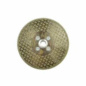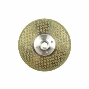 Diamantový kotouč 2 v 1 určený pro srážení hran a řezání tvrdých materiálů, jako je kamenina a keramické dlaždice. Diamant pokrývá celou plochu disku z obou stran.