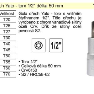 Profesionální šestihranný bit Torx pro 1/2″ ráčnu.