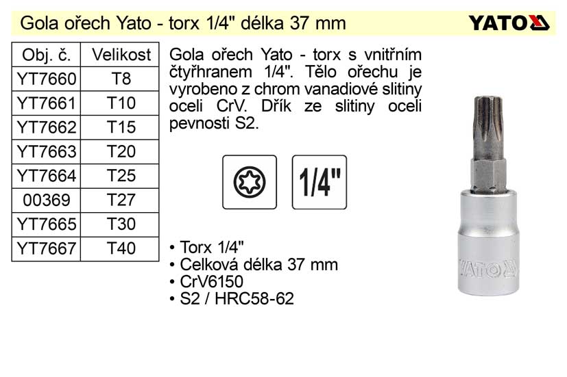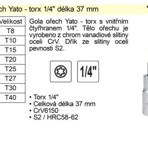 Profesionální šestihranný bit Torx pro 1/4″ ráčnu.