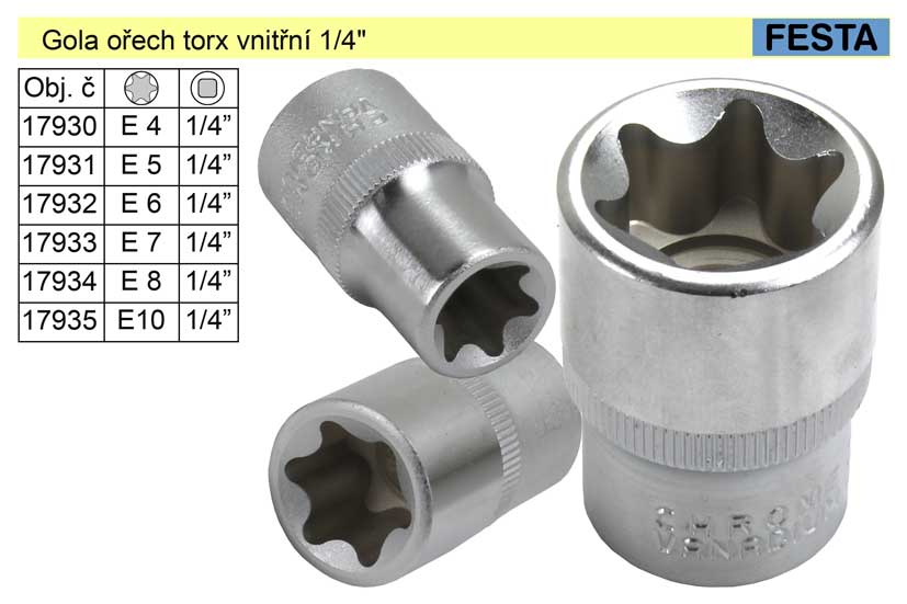 • Gola ořech torx _ vnitřní E6 / 1/4″