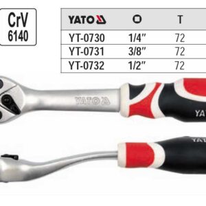 Ráčna je opatřena přepínací páčkou a jemným chodem zajištěným 72 zubým mechanismem.