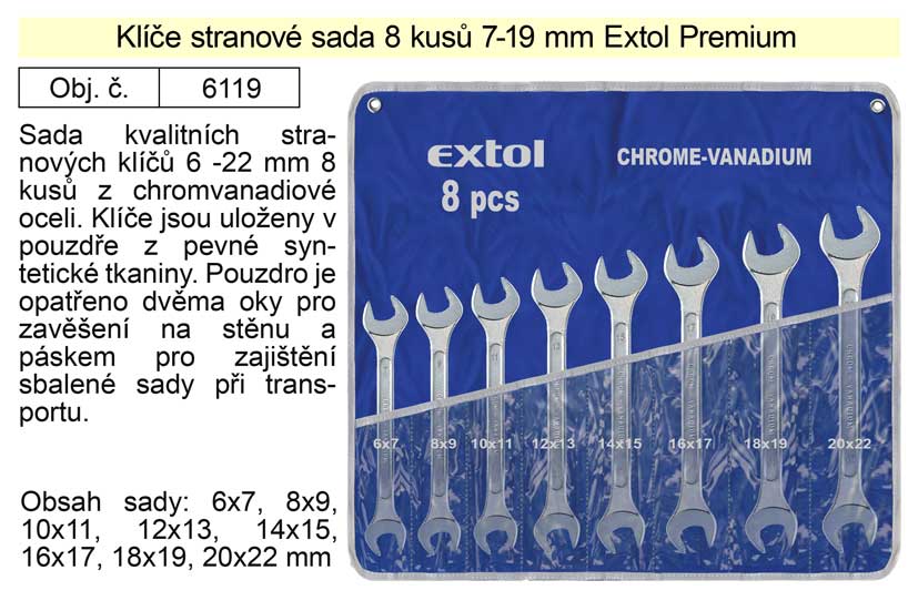 Sady klíčů Extol jsou optimálně složené a obsahují velikosti, které se nejvíce používají ve strojích, v autech, na stavbách i v domácnostech. Pro průmyslové použití i hobby použití nabízíme řadu Extol Premium z kvalitní chrom-vanadové oceli a Extol Craft z uhlíkové oceli. Stačí si jen vybrat sadu, kterou si opravdu užijete.