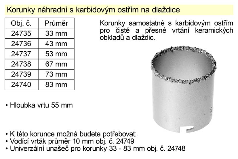 Korunka náhradní 83 mm s karbidovým ostřím na dlaždice
