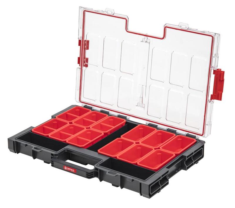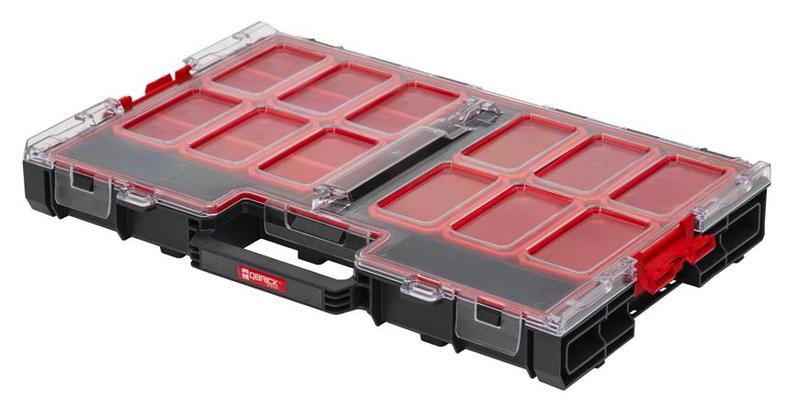 – prostřední organizér z řady ONE – patentovaný systém Easy Access, který díky speciálním konektorem umožnuje lehký přístup k jednotlivým modulům bez nutnosti jejich odmontování a zvyšuje ergonomii práce. – Rozměry: 531 x 379 x 77 mm – Objem: 6 l – 12 přihrádek – Flexibilní těsnění chrání obsah v přihrádkách před vniknutím vody a prachu