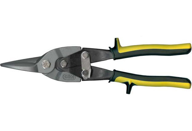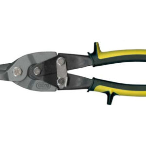 Vystřihovací nůžky na plech s pákovým převodem, na přímé střihy. Tyto vystřihovací nůžky mají břity přizpůsobeny pro střih přímý a pravé oblouky. Břity mají tzv. mikro ozubení, které zamezuje sesmeknutí plechu mimo osu střihu.