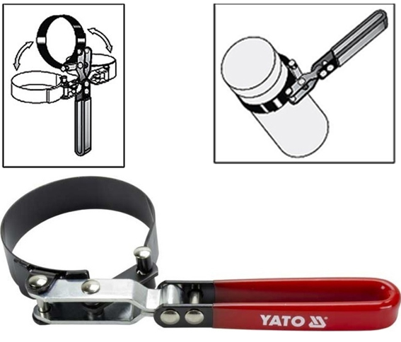 Je vhodný například pro povolování olejových filtrů automobilů, horkých zátek chladičů a podobně. Pracuje na principu obepnutí součásti pásem z pružinové oceli.