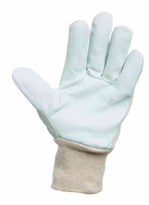PELICAN PLUS – rukavice pracovní šité z jemné lícové kozinky v dlani, bílé bavlněné tkaniny na hřbetu a s nápletem velikost 9