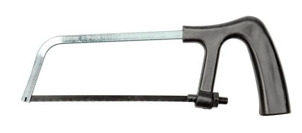 Vyrobeno ze čtvercové ocelové tyče s plastovou rukojetí. Napnutí pilového kotouče šroubem a maticí.