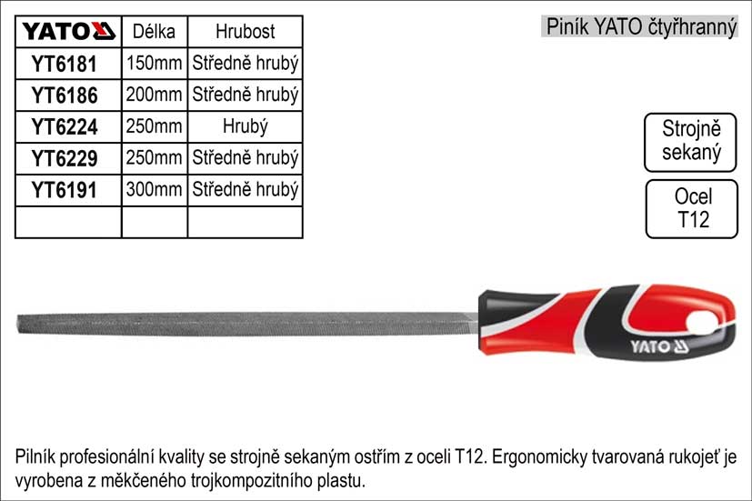 Pilník YATO čtyřhranný délka 250mm středně hrubý