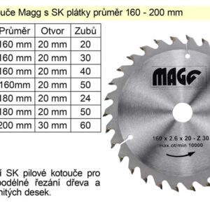 • Pilový kotouč s SK plátky 160x20mm 40 zubů Magg