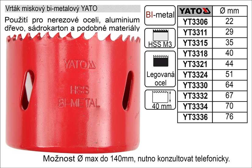 Yato YT-3336 Korunka vrtací bimetalová 76 mm