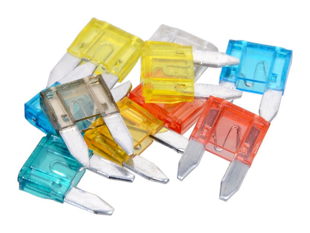 Sada 10 kusů nožových pojistek mini pro použití v automobilech (max. 24V).