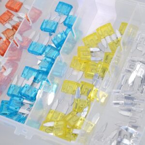 Celkem 120 pojistek v přehledném, přihrádkami opatřeném kufříku. Pojistky jsou určeny pro napětí do 50 V a jsou certifikovány, materiál zinek v kombinaci s plastem.