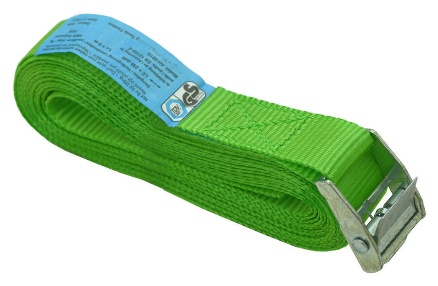 Praktický upínací popruh s homologací TÜV/GS k zajištění předmětů, zavazadel, nebo nákladu.