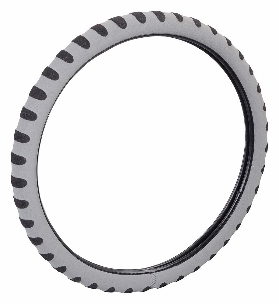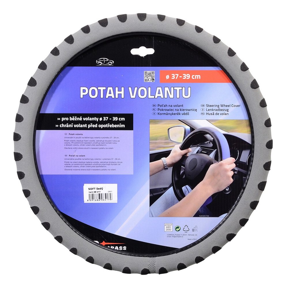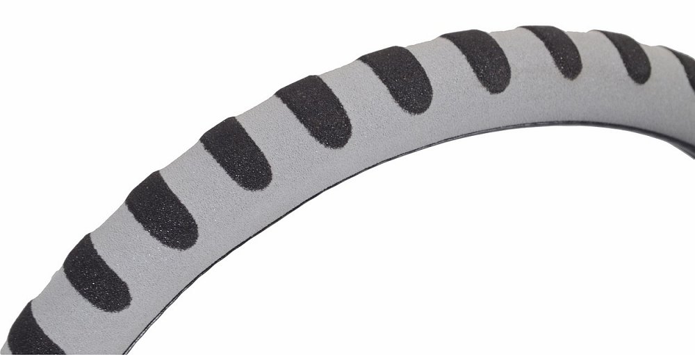 Pěnový potah určený k nasazení na volant o průměru 37-39cm. Příjemný do ruky. Barva černá s šedými prolisy.