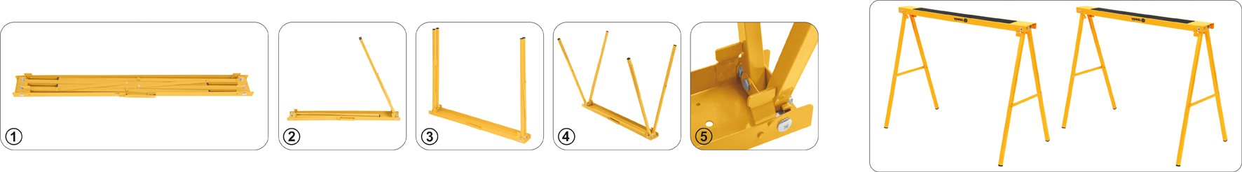 Sada stabilních pracovních základen se skládacím mechanismem.