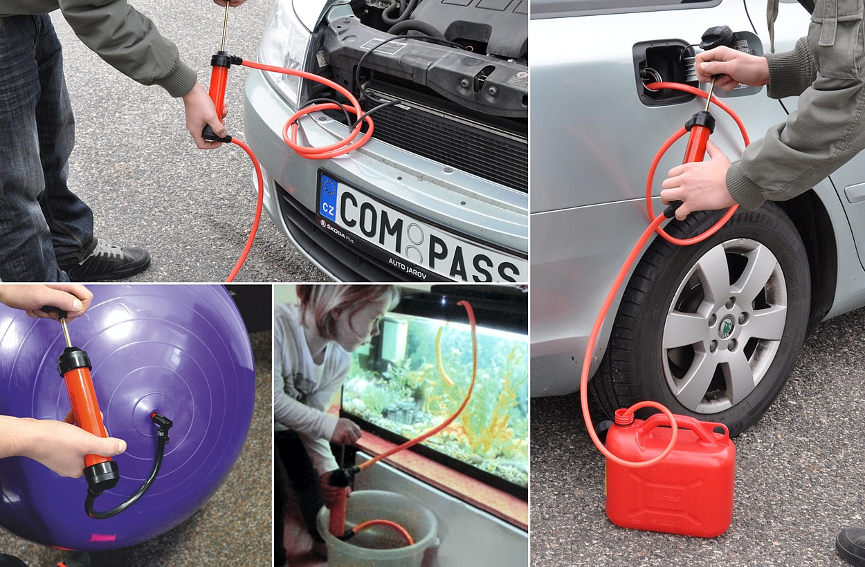 Je snadné nahustit matraci, bazén, jízdní kolo, či fotbalový míč,. nebo je možné pumpu použít pro přečerpání kapaliny – ať již k vyčerpání vody z akvária, tak i k přečerpání nafty, ale dokonce i k odsátí oleje z motoru.