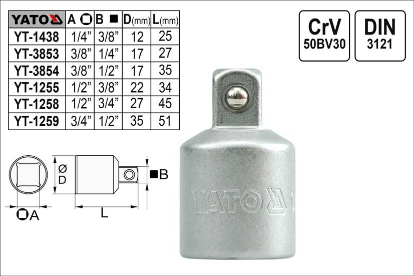 Yato YT-1259 Nástavec adaptér 3/4″F – 1/2″M DIN3121 CrV50BV30