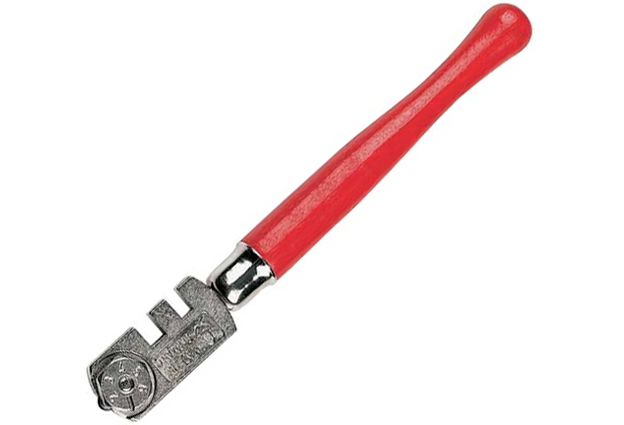 Klasické řezátko na řezání skla, s diamantový řezacím kolečkem ze slinutého karbidu wolframu.