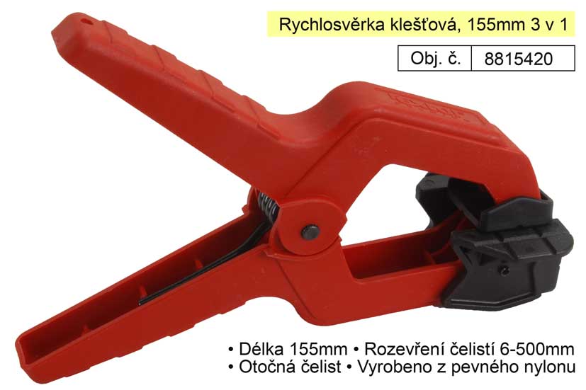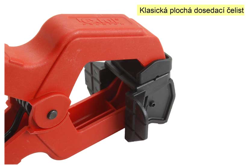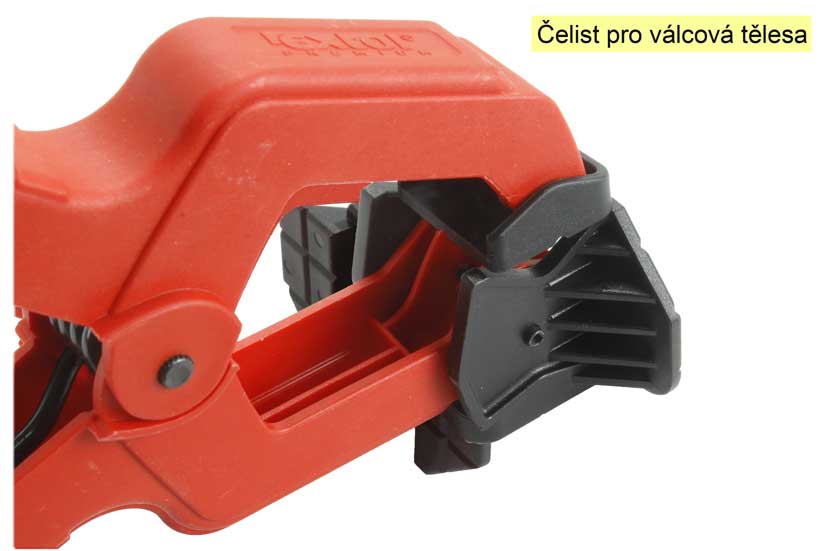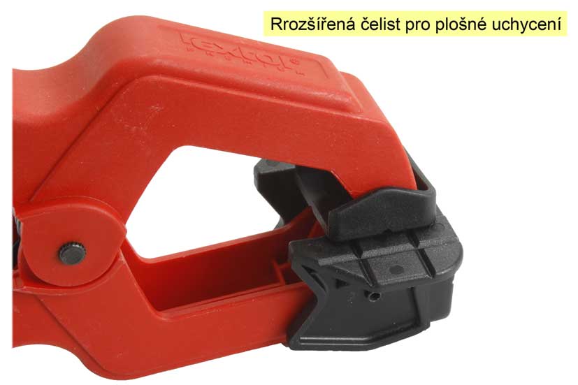 díky speciálnímu tvaru pohyblivé koncovky je možné nastavit 3 různé typy čelistí: klasická čelist, čelist tvaru „V“ pro uchycení trubek o průměru 6-50mm a čelist tvaru rozšířeného „Y“ pro sevření předmětů o větší ploše