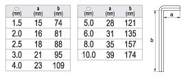 Sada 9 ks delších imbusových klíčů běžných rozměrů, uložených v přehledném, plastovém držáku.