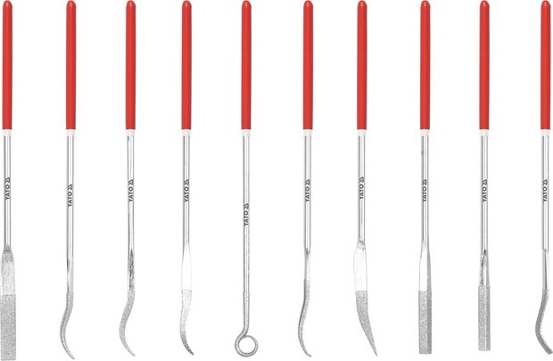 Sada 10 ks diamantových pilníků se zrnitostí 150.