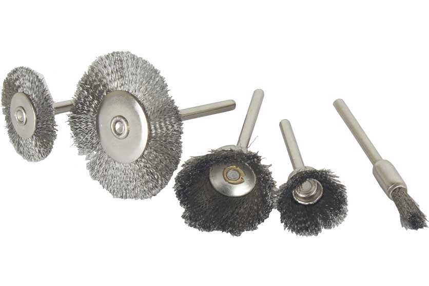 Set rotačních kartáčů pro jemné práce přímou rychloobrátkovou bruskou.