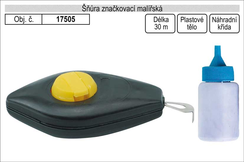 Orysovací – rýsovací šňůra o délce 15 m v plastovém pouzdře.