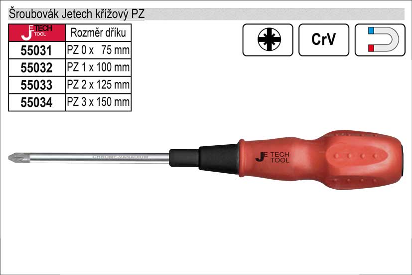 Kvalitní šroubovák s výrazně tvarovanou rukojetí pro maximální přenos síly, s dříkem ze speciální chrom-vanadové slitiny a s přesně frézovaným magnetickým hrotem, který dokonale přilne k hlavám šroubů a vrutů.
