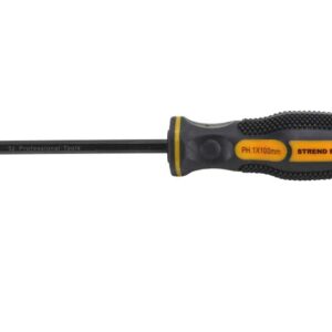 Úderový šroubovák s průchozím dříkem přes celou rukojeť Strend Pro z kvalitní chrom vanadiové oceli s tvrzeným hrotem, s protiskluzovou rukojetí opatřený měkčenou gumou.