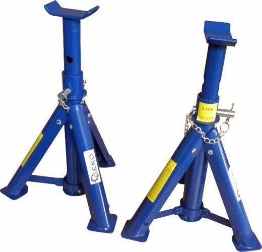 Stabilní ocelová konstrukce, lakovaná, možnost změny nastavení výšky, skládací, zkoušeno TÜV/GS, nosnost 2000kg, 1 pár.