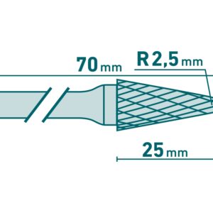 doplňující parametr: průměr frézy 10mm, délka ostří 25mm, průměr stopky 6mm, celková délka 70mm, materiál wolfram karbid, tvrdost 89-91HRA