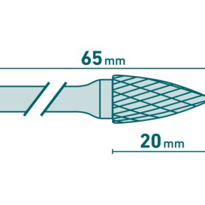 doplňující parametr: průměr frézy 10mm, délka ostří 20mm, průměr stopky 6mm, celková délka 65mm, materiál wolfram karbid, tvrdost 89-91HRA