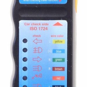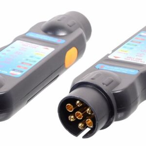Tester s LED diodami pro ověření všech funkcí osvětlení pro zásuvku tažného zařízení vozidla a pro zástrčku přívěsu. Otestuje všechny 7 pólové zásuvky a zástrčky; pomocí adaptérů (není součástí balení) i všechny 13 pólové zásuvky a zástrčky v 7 pólové funkci. LED kontrolky zobrazí nefunkční spojení.