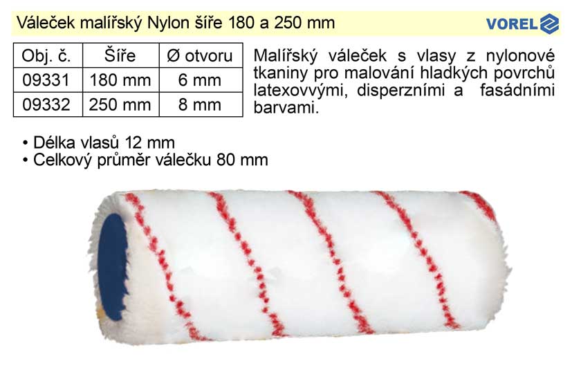 Malířský váleček s vlasy z nylonové tkaniny pro malování hladkých povrchů latexovvými, disperzními a fasádními barvami.